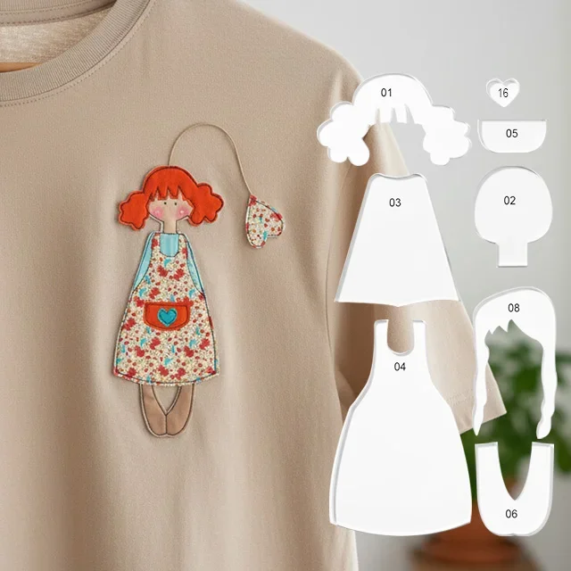 [T-Shirt Savior! Sew Adorable Dolls onto Your Clothes] Transform a basic style into a limited edition! This red-haired doll fabric patch comes with a built-in floral apron; even beginners can sew it from pre-cut fabric pieces. Attach it to a T-shirt or sweatshirt for an instant cuteness boost; each garment will have its own unique gentleness.