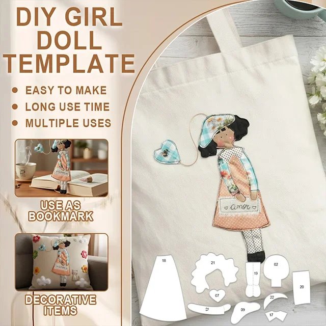 [Even Those with No Crafting Skills Can Save Their Bags! Doll Fabric Patch Kit] No fabric cutting required! Ready-made templates for direct sewing; add retro dolls and heart charms to your canvas bag, and instantly transform a plain bag into a unique design! Even beginners can complete this in 10 minutes, easily capturing the handmade feel, ensuring your bag is unlike any other!