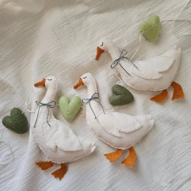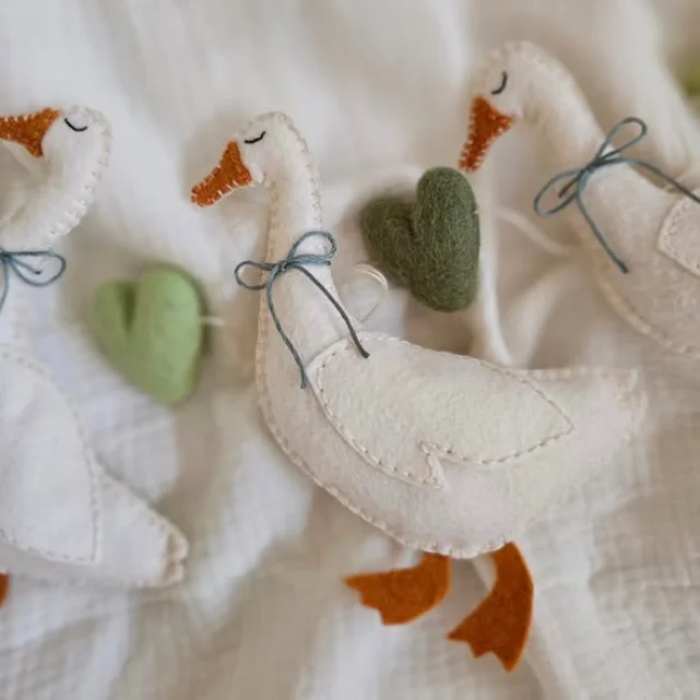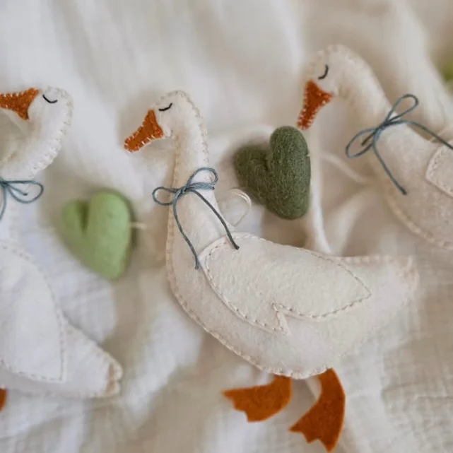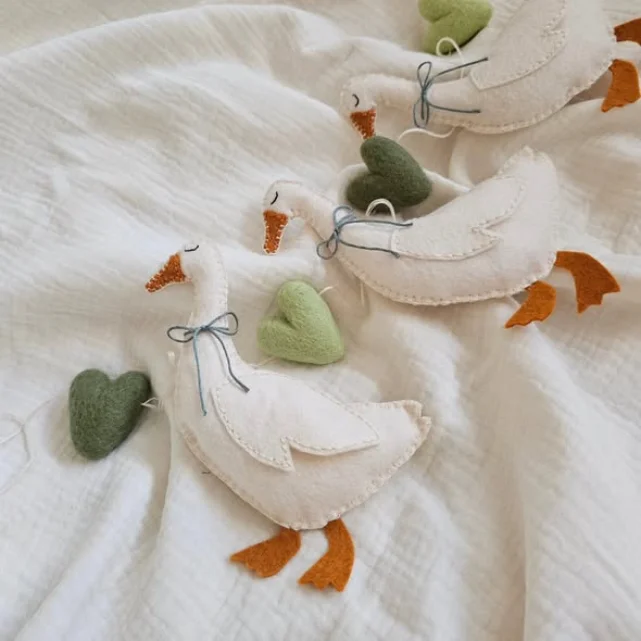 Meet the Felt Goose Garland, a soft, sweet decoration that brings cozy storybook vibes into nurseries and little corners of your home. Designed with an heirloom feel, these adorable geese look like they waddled straight out of a dream, ready to hang above cribs, shelves, or reading nooks and sprinkle calm, handmade magic everywhere. ✨
